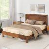 - 【No Box Spring Needed& Recommended Mattress Size】With wooden slat support, you can place your mattress directly on the platform. A standard queen-size mattress is recommended for this slatted bed base. Besides, the slightly raised bed rails can keep the mattress in place.